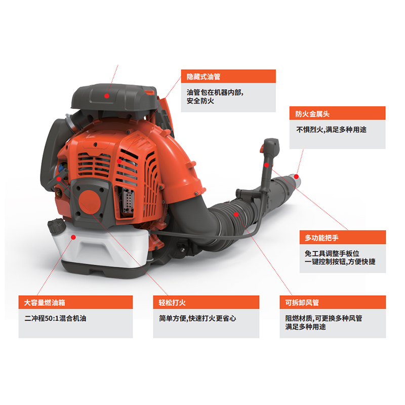 型号:6MF-18-47-(G85) 可用于森林灭火、路面除尘、大棚除雪、落叶清理。是一种利用高速气流扑灭火焰的消防设备,主要用于扑灭草地、灌木和小型森林火灾。具有快速、灵活、环保等优点,广泛应用于森林、草地等火灾扑救。 排量:75.6 ml,功率3.3kw,缸径:51mm,行程37mm,油箱容量2.6L,风机净重10.6kg,出风口风量0.47m³/s,灭火距离1.86m。 型号:6MF-23-48(G90) 排量:75.6ml,功率:3.3KW,缸径:Φ51mm,行程:37mm,油箱容量:2.3L,风机净重:10.5kg,出风口风量:0.48m³/S,灭火距离:2.25m。 型号:6MF-23-57(G95) 排量:79.9ml,功率:4.3KW,缸径:Φ53mm,行程:36.2mm,油箱容量:2.8L,出风口风量:0.58m³/S,灭火距离:2.25m。 |